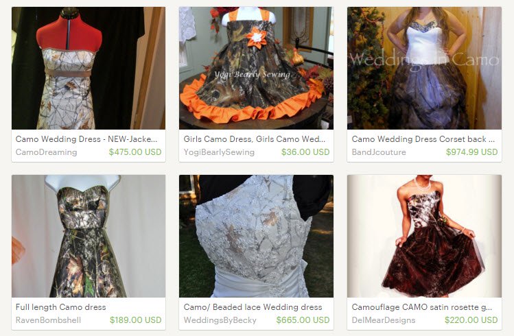 Camouflage is big in the United States so if you are in the US you will probably have already heard about Mossy Oak which is a big brand for outdoors and hunter camouflage. Go on their website and you can buy camouflage tops, caps, hats but no dresses. What do you do?