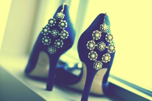 You can easily make a plain pair of ivory wedding shoes more glamorous by adding a little bit of your own sparkle. You can buy crystals from most craft stores and with a hot glue gun create your own design. Make sure that the fabric of your wedding shoes is suitable for the type of glue that you want to use. Also look out for shoeclips which you could add to your shoes for your wedding day and then take off after, this would be great if you are borrowing your shoes as then there is no damage.