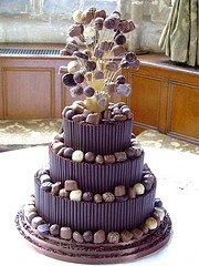 Chocolate wedding cakes have come of age, they are no longer just quirky but are full on main stream wedding cakes and the great thing for brides today is that there is so much choice! I remember the first wedding cake made in chocolate I ever saw, it was 16 years ago and it was stunning. Three tiers of chocolate cake and decorated with chocolate flowers, created by a chef friend as his wedding gift. Sadly not all of us have talented chef friends and chocolate cakes can be even more expensive than traditional wedding cakes as they have to be made much closer to the wedding date otherwise they can become dry. However there is one big saving with a chocolate cake and that is that you can serve it as your dessert. It would be rude not too! |