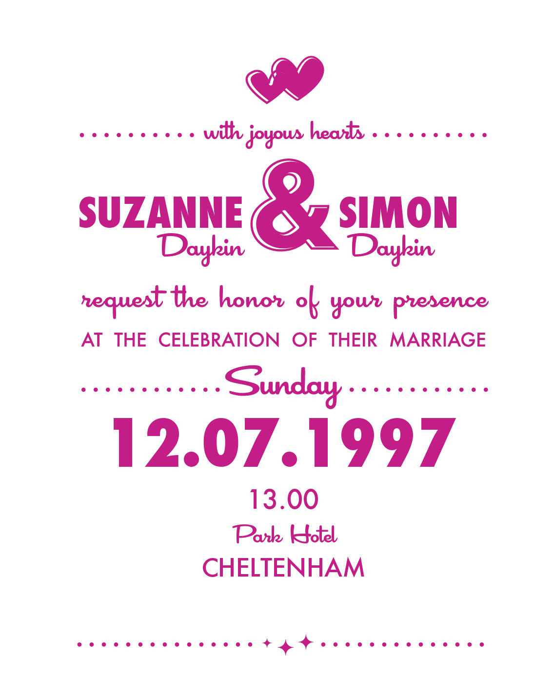 You download a pdf of the invite you want for free, this will come in a zip folder containing the invite, RSVP and also the fonts that they use.
