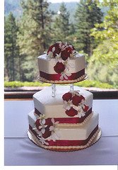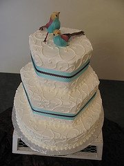 You can also incorporate other shapes into your wedding cake design, it could be a round or a square layer and looks good. Also helpful if your hexagon cake pans are giving you a nightmare! If you decide that making your own hexagon cake sounds a bit much you will need to order your cake from your baker as at the moment very few supermarket cakes come in hexagons. As soon as they do we will let you know as this would save you a fortune!