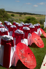 If it is sunny you could have parasols for the ladies, which could then be your wedding favor to them too.